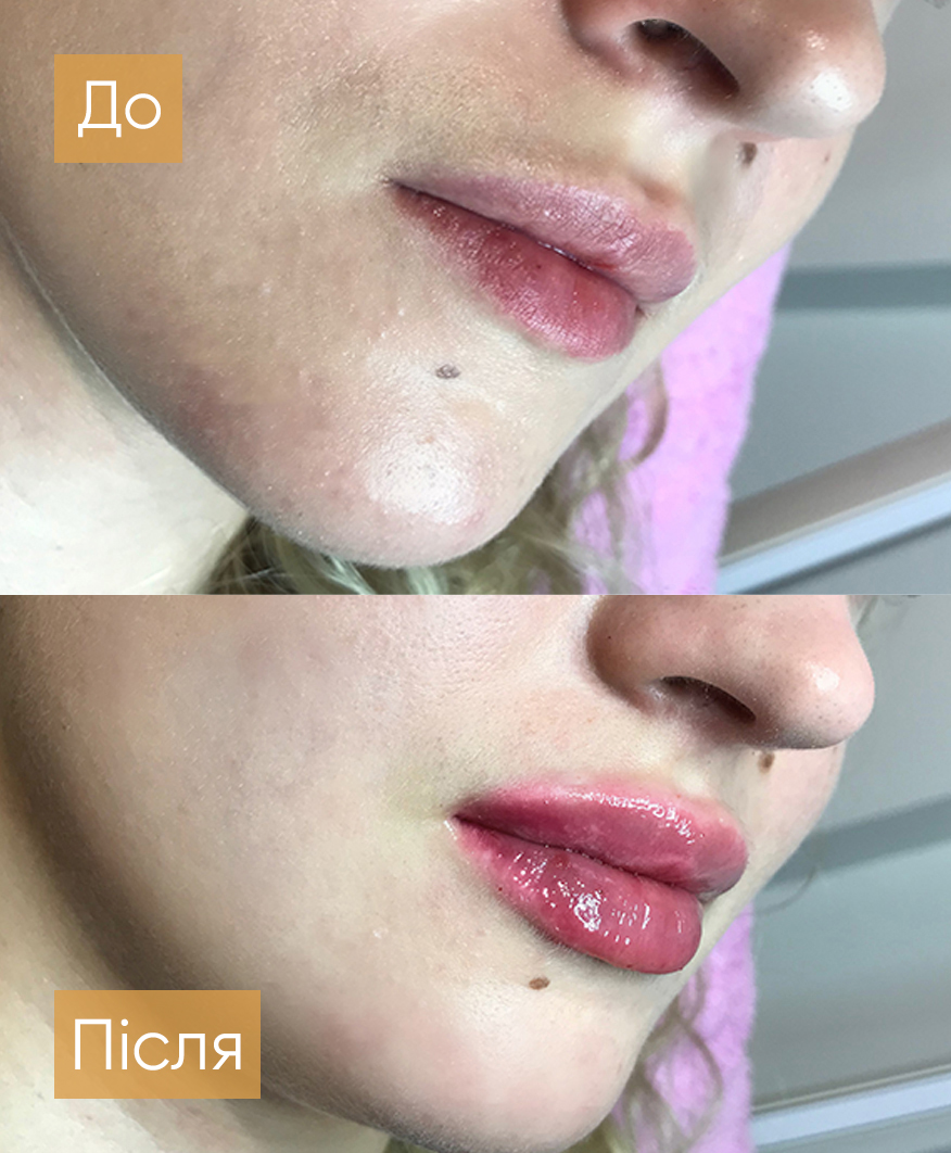 Після збільшення губ гіалуроновою кислотою ефект помітний відразу. У пацієнта може зберегтися незначний набряк, який повністю зійде протягом 1-2 днів. Для остаточної оцінки результату потрібно 5-8 днів.